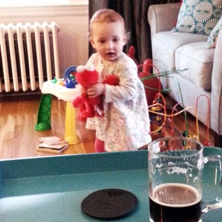 OK, enough. Cranky today! How about this little girl of mine? As I said, she refused to nap and was consequently punchy, bouncing around the room with Elmo (glad that’s cleared up), trying to high-five players up and down, bringing me coasters as if I were drinking four beers at once, gazing at me while resting her head on the ottoman… these are my favorite moments. I picked her up several times and tried to snuggle her into accepting sleep. On the fourth or fifth attempt she calmed down, put her thumb in her mouth and eventually snored her way to dinner. I, too, was able to relax and resist the urge to fast-foward to the end of the game to see how it turned out. I’m a better football fan for it. She is beautiful.