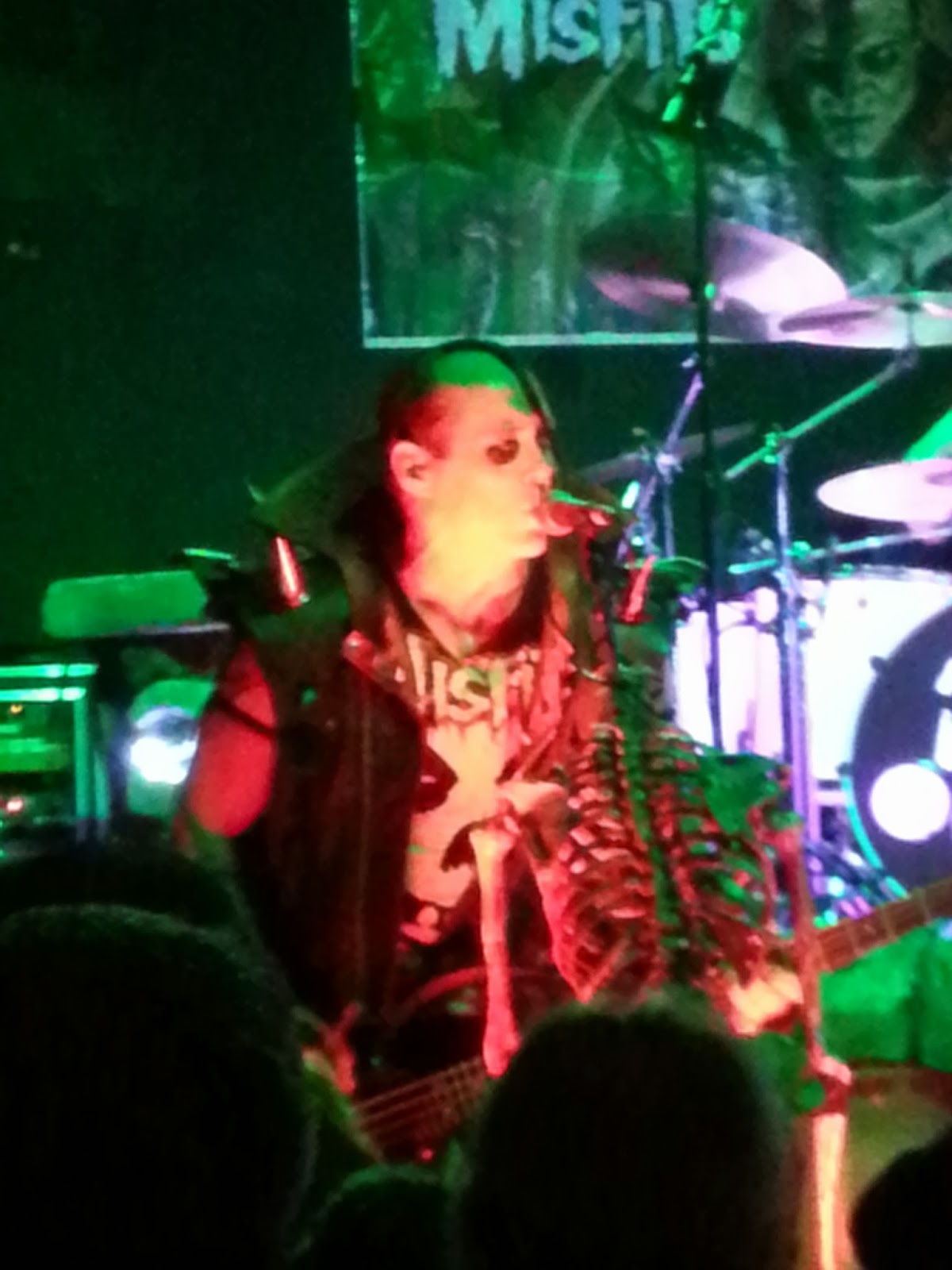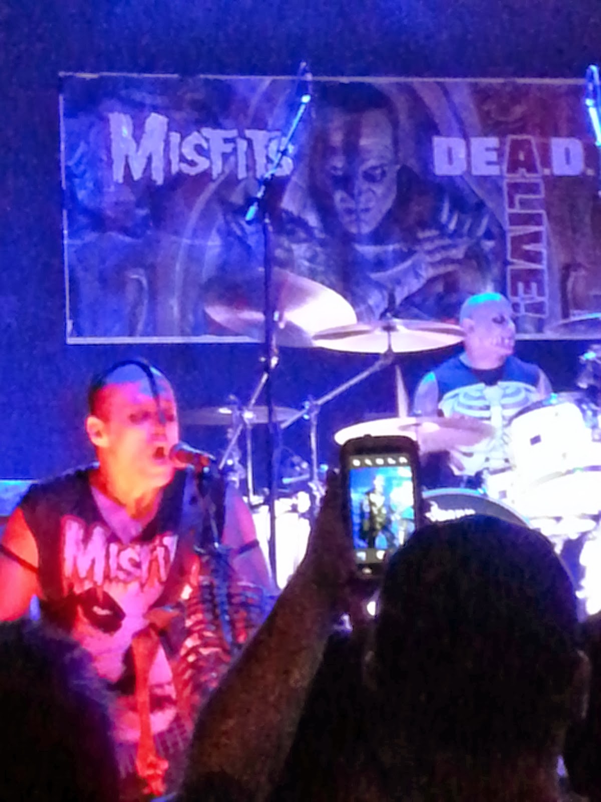 Our timing was perfect because Local Shitstorm closed amateur hour (amateur two-and-a-half hours). We made the educated guess and returned to the lower level, got some refills and moved to within fifteen feet of Jerry Only’s eventual microphone. Not three minutes later he entered from the parking lot via the general admission entrance (somewhere Glenn Danzig chuckled as he searched his couch cushions for autopsy photographs). Jerry and Dez and not-Robo were full-on and they opened with “We Are 138,” if I remember right, and I probably don’t. And look! Jerry’s wearing a MISFITS shirt. Just like everyone else in here!