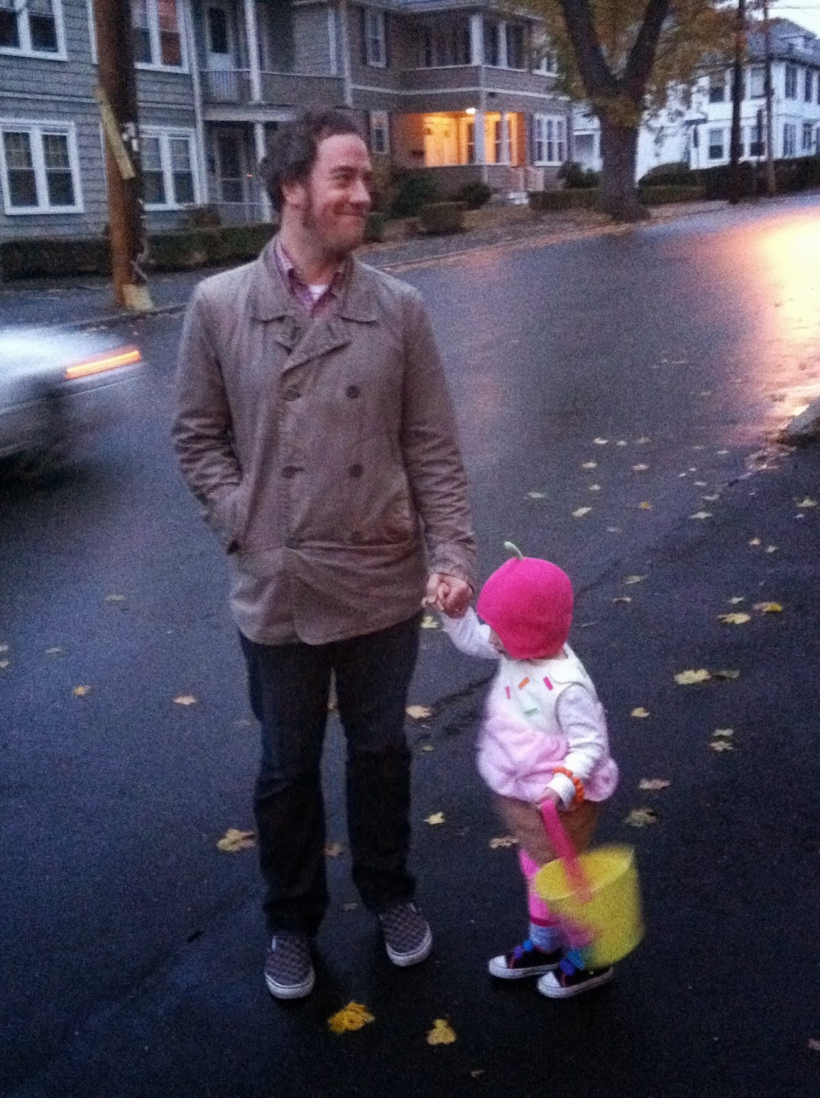 Fast forward to Halloween, when we went trick-or-treating with that same family. Their little girl (only eight days older than G.) was seriously the cutest cowgirl there ever was. The boots? The boots! They live up the street so we stuck close to home. I’d have included pictures of her if it weren’t so weird to ask her parents “Hey, do you mind if I put a picture of your daughter on the internet? I write a series of blog posts about the Patriots, except I don’t write much about the Patriots, it’s mostly about how people should be lining up to buy my amazing—amazing!—music collection. I also compare the logo for the InterContinental Hotel to a vagina on an annual basis. So… whadaya say? Hawkwind? Polvo?” That arrest warrant writes itself.