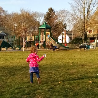 Until Sunday night (the Pats game was a primetime affair for me) I considered the Lions hosting the Bears on Thanksgiving. We’ll be in Connecticut and the TV will be on—I insist—so why not make it interesting? Oh, the Lions are why not. Fuck Dominic Raiola. (The awkward conversation with my father-in-law about why I brought my own beer when he has skunky, year-old Sam Adams in the fridge will be interesting enough.) In lieu of sitting on a couch on a beautiful afternoon (welcome to New England) we found a lovely playground and adjoining field in Beverly where I broke out the easiest-to-fly kite ever invented. If there’s a lick of wind you take one step and it’s airborne—even a three-year-old can do it and then run around like a crazy person because she doesn’t understand physics. “Honey, run that way! Don’t run toward the kite. Or… yeah, you’re OK.” It was worth the eight bucks. I was surprised by how many fathers were also enjoying a Pats-less couple of hours, particularly the one wearing a mark-two number eight-four Deion Branch jersey. I’m surprised G. didn’t fight him for it, as Branch was once her favorite player. I don’t know who it is now. I’ll have to ask.