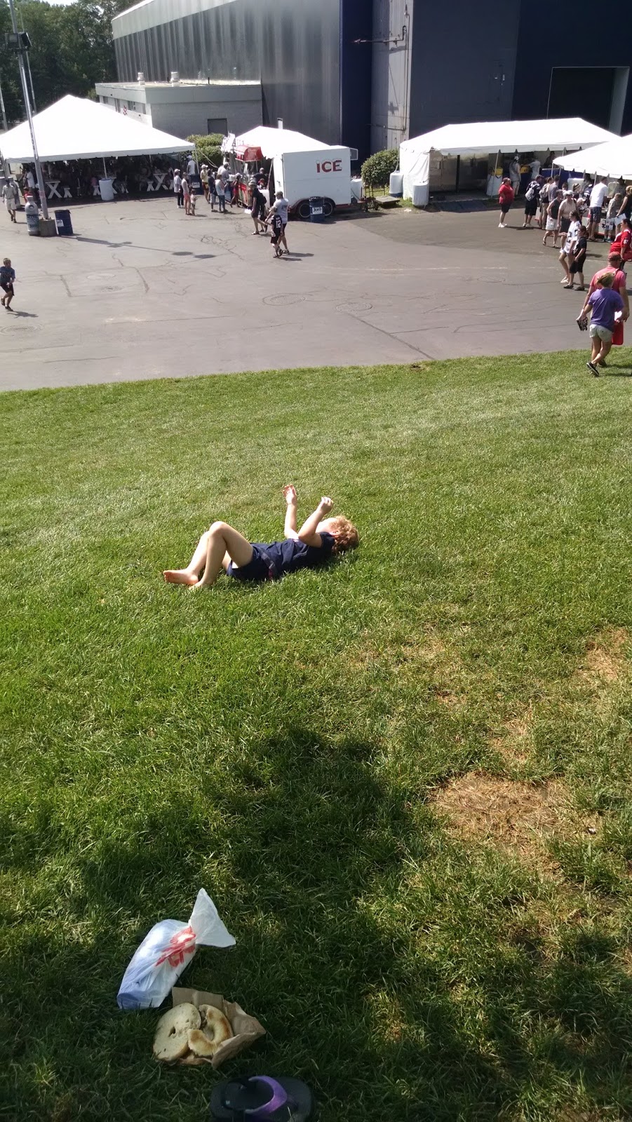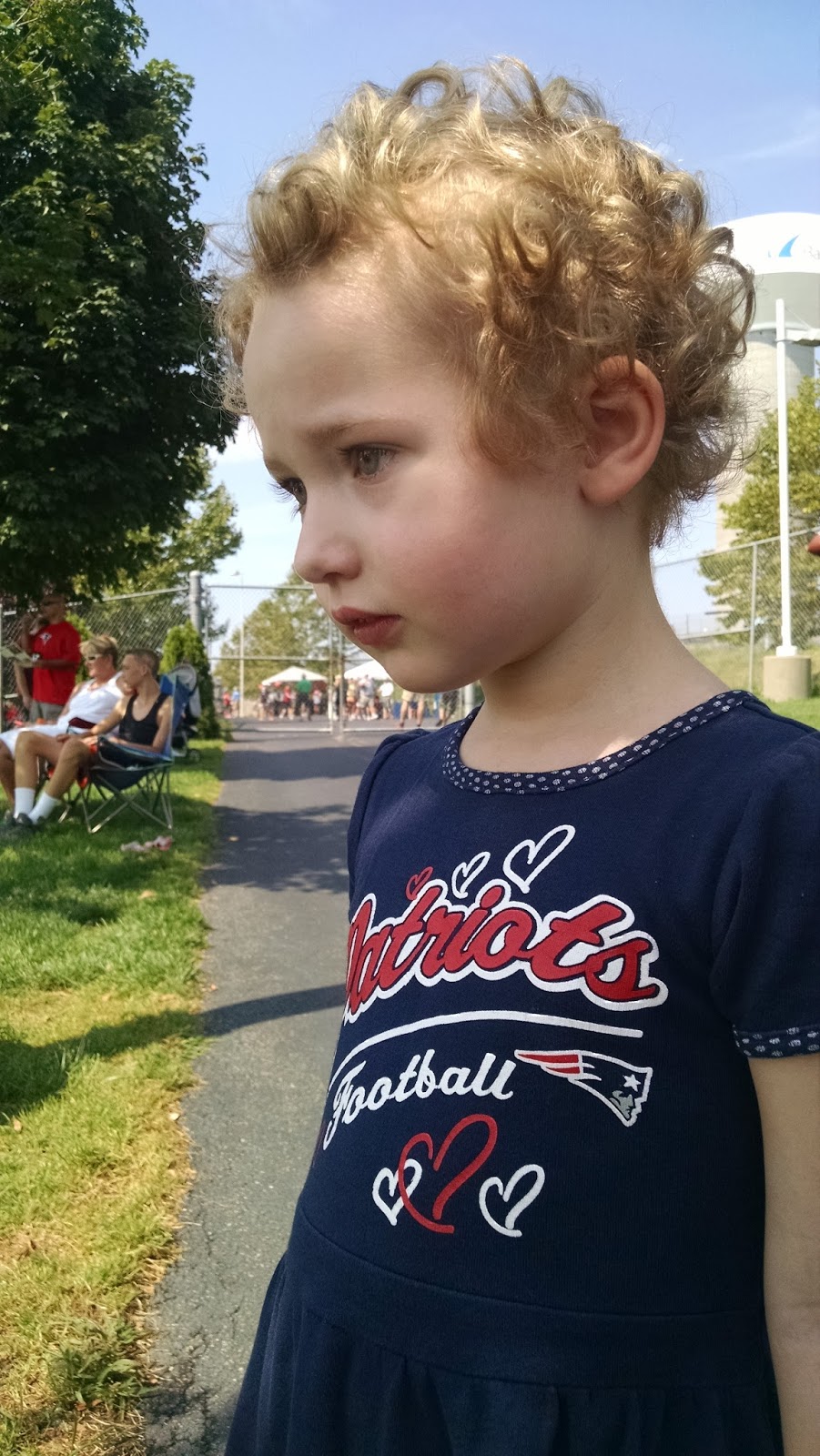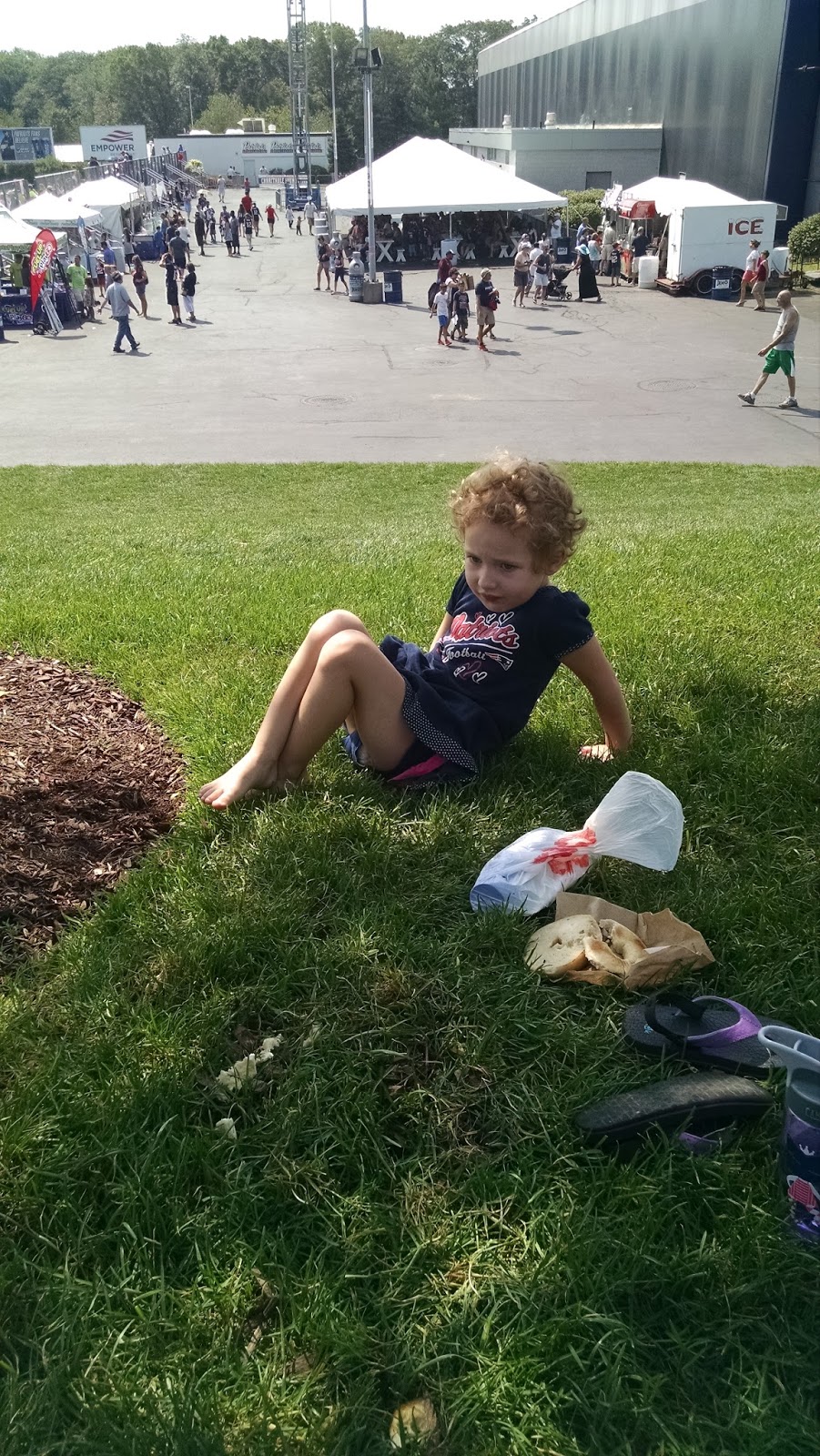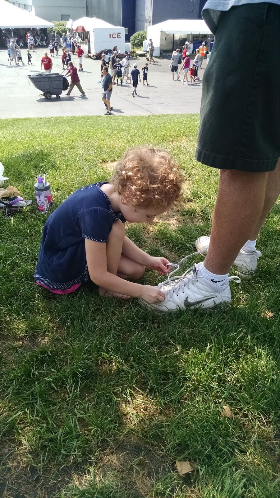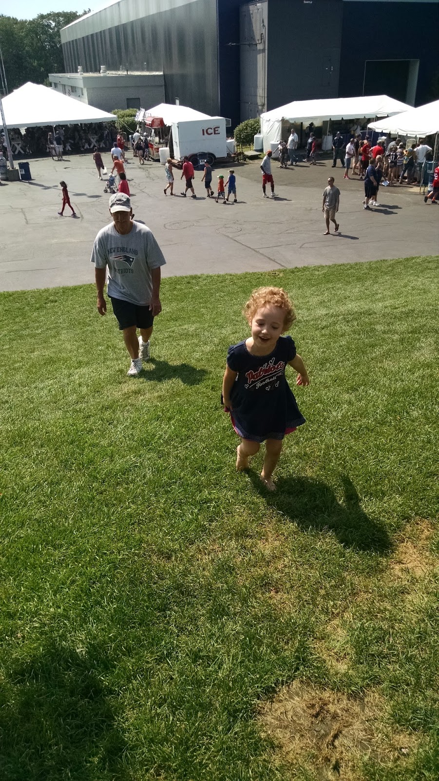 I’ll keep this short with kickoff a week away. Training camp was all sunshine again as my dad met G. and me in the shadow of the Dana-Farber Empower Field House. To celebrate the Pats’ fourth title, I will limit each photo caption to four words.