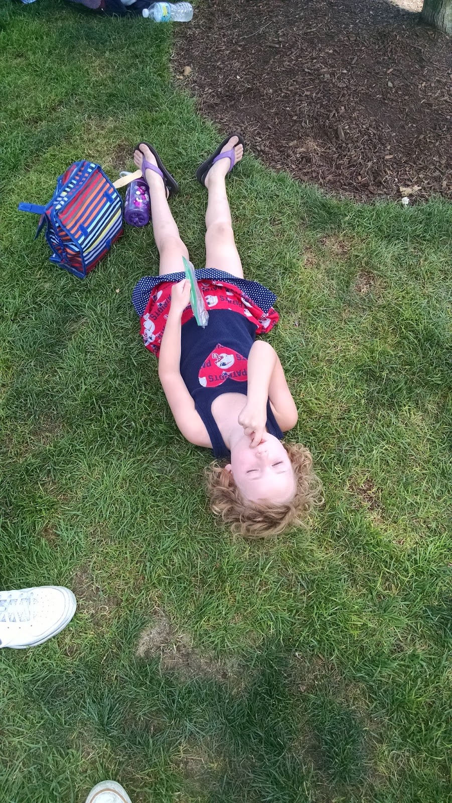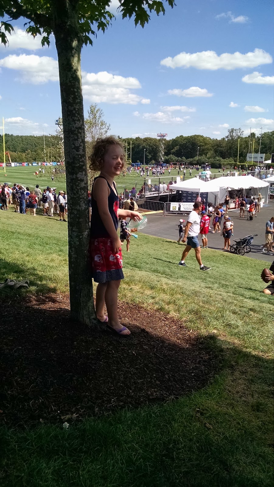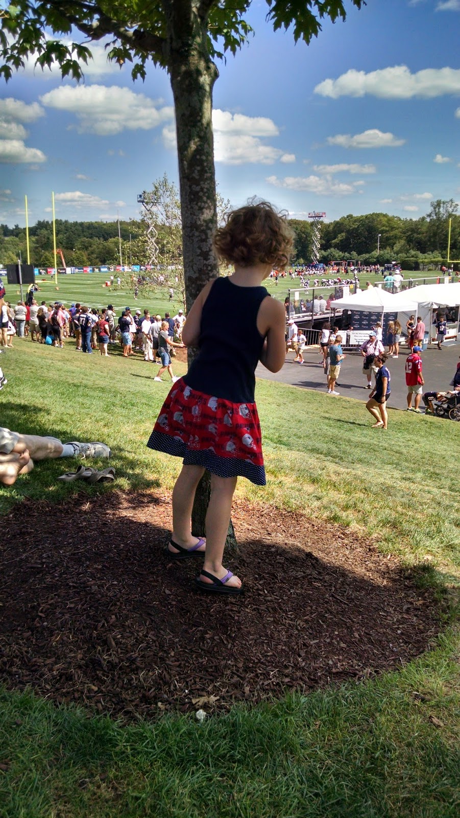 We went later this year, forgoing late-July heat for mid-August heat and a joint practice with the Bears (more on them in a bit). Yes, it’s the one where Gronk pulled his hamstring. And now he’s out tomorrow. Drag. G. wasn’t much into having her picture taken that afternoon so I’m left with several of the back of her head. But the curls! The curls.