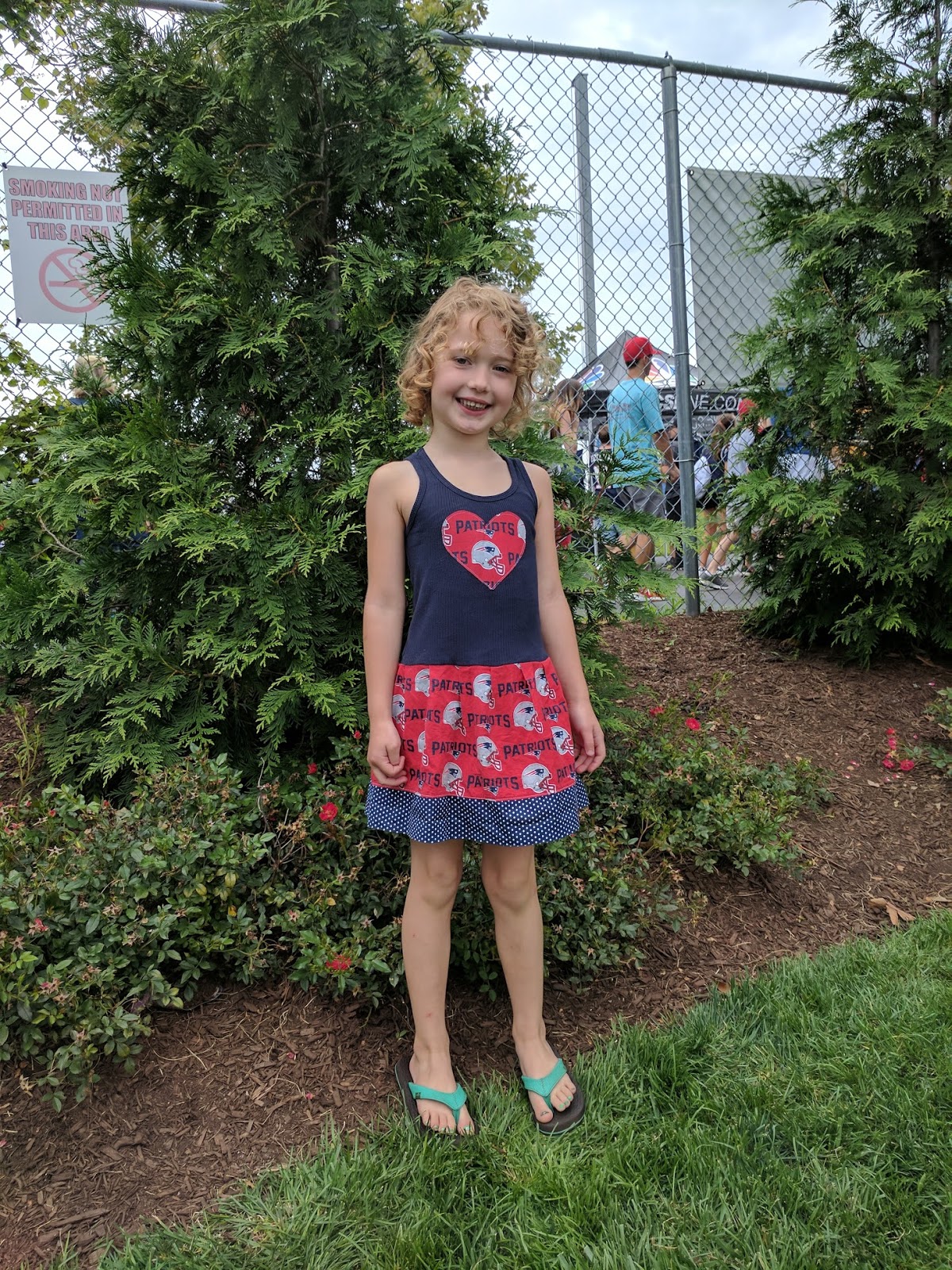 Training camp was a little subdued for G., my father and me this year as an overwhelming crowd obscured much of the action in a joint session with the Jaguars. I appreciated Papa’s vow to appeal to Robert Kraft about moving a particular tree—passion over right and wrong, or over things in our way, runs hot in the blood. G. didn’t like how “the flavor” kept seeping to the bottom of her slushie and more or less refused to have her picture taken. I managed to get a couple of keepers before a lack of balloons at Red Robin brought it to a full stop. At least 2016’s Etsy dress still fits, even though we needed to bring it to a seamstress—whose workspace resembled a Hobbit hole—for repairs. Beware the internet and its shoddy stitching.