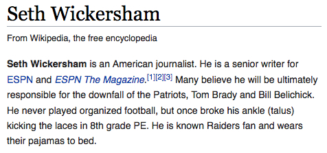 Seth Wickersham is the troll of the day, gifting us with the antithesis of a Friday news dump as his ESPN hype machine picks the low-hanging fruit and squashes feel-good stories about the wild-card Bills and the Super Bowl-hosting Vikings. “The Patriots, in the only statement anyone associated with the team would make on the record for this story, responded to specific questions by saying that…” “…we won thirteen games this year so what gives?” Is Wickersham wrong if the team wins another title in a few weeks? If they fail, does anything he’s right about even matter? It feels like a Cliff’s Notes version of every “Brady and Belichick don’t like each other” and, more recently, “Belichick and Guerrero don’t trust each other” piece written by hacks who otherwise ignore the football being played. Wickersham’s article is the story of the offseason, whether the Pats lose to the Chiefs or defeat the Saints, and the playoffs haven’t even begun. Just don’t forget that the incident related in its opening paragraphs, in which Brady F-bombs McDaniels on live television, happened a month after Garoppolo was traded and Brady “seemed liberated” and “especially excited.” History is seldom written by sour Raiders fans but when it is they end with a flourish: “…their collective will to stave off the fall.” Bravo! And don’t forget about John Jastremski and Jim McNally!
